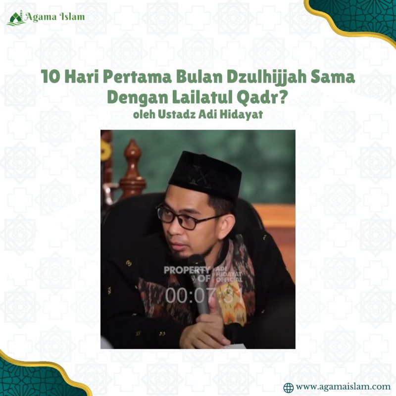 Ustadz Adi Hidayat menegaskan bahwa meskipun sepuluh hari pertama Dzulhijjah adalah waktu yang mulia, malam Lailatul Qadr memiliki keistimewaan khusus yang tidak bisa disamakan. Namun, di sisi lain, ibadah pada sepuluh hari pertama Dzulhijjah juga memiliki pahala yang besar, sehingga umat Muslim dianjurkan untuk memanfaatkannya dengan sebaik mungkin.