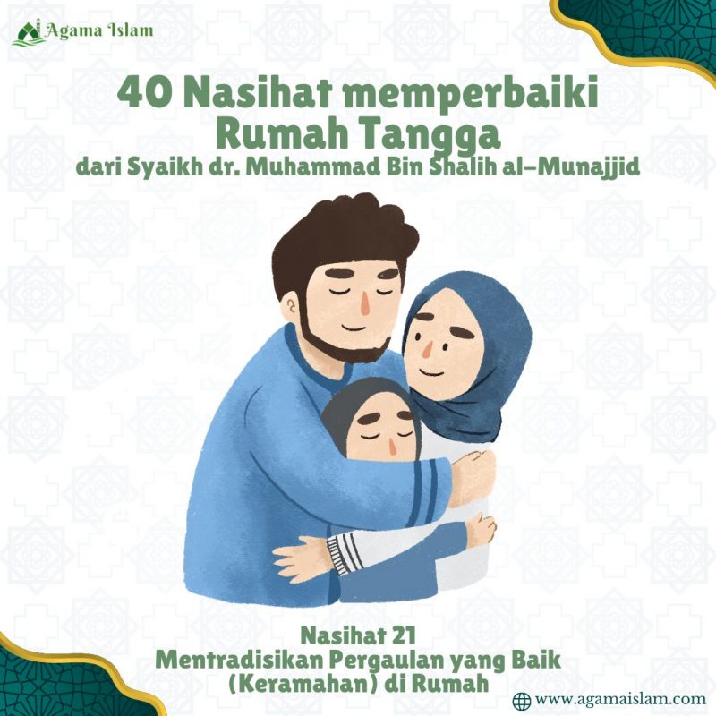 Buku “40 Nasihat Memperbaiki Rumah Tangga” karya Syaikh Dr. Muhammad bin Shalih al-Munajjid adalah panduan yang sangat berharga untuk menjaga keharmonisan rumah tangga dalam ridha Allah SWT. Salah satu nasihat yang sangat penting dalam buku ini adalah Nasihat 21: Mentradisikan Pergaulan yang Baik di Rumah. Nasihat ini menekankan pentingnya membangun hubungan yang penuh keramahan, kasih sayang, dan saling pengertian antara anggota keluarga.