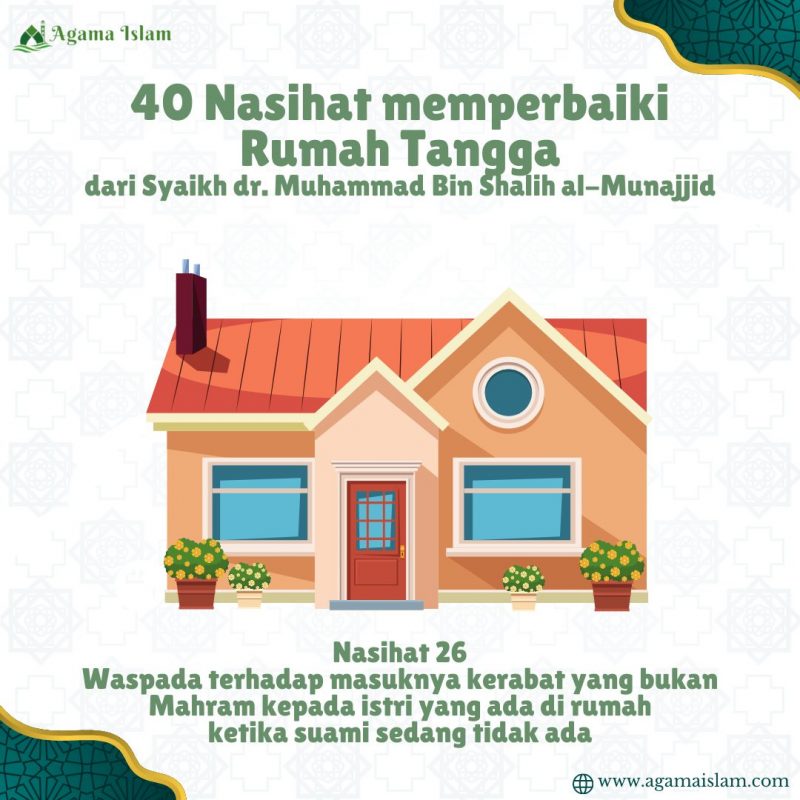 Penjelasan Nasihat 26: Waspada terhadap Masuknya Kerabat yang Bukan Mahram kepada Istri yang Ada di Rumah ketika Suami Sedang Tidak Ada
