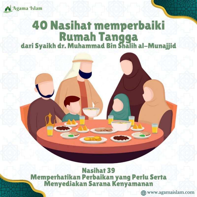 Dalam menjaga keharmonisan rumah tangga, perhatian terhadap aspek fisik rumah juga menjadi sangat penting. Nasihat 39 dari buku “40 Nasihat Memperbaiki Rumah Tangga” karya Syaikh Dr. Muhammad bin Shalih al-Munajjid, menekankan pentingnya memperhatikan perbaikan yang perlu serta menyediakan sarana kenyamanan di rumah. Ustadz Khalid Basalamah juga memberikan penjelasan mendalam mengenai hal ini. Artikel ini akan membahas nasihat tersebut berdasarkan Al-Qur’an, Hadis, dan penjelasan dari Ustadz Khalid Basalamah.