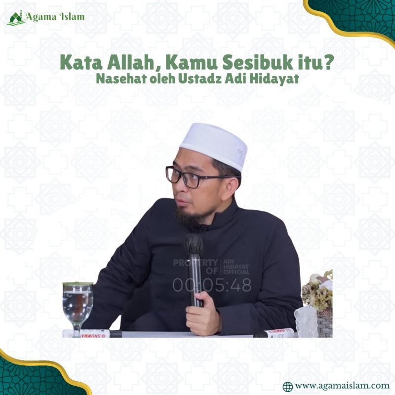 Ustadz Adi Hidayat mengingatkan bahwa Islam tidak mengajarkan untuk meninggalkan dunia sepenuhnya, tetapi menekankan keseimbangan antara urusan dunia dan akhirat. Kita harus bijak dalam mengelola waktu dan prioritas, memastikan bahwa kesibukan dunia tidak menghalangi kita dari beribadah dan mengingat Allah SWT.
