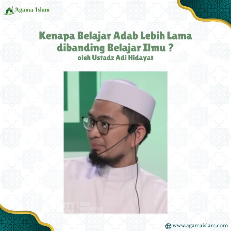Belajar adab lebih lama dibandingkan belajar ilmu karena adab adalah fondasi dari segala sesuatu. Adab membentuk karakter, mengajarkan kesabaran, dan menjadikan ilmu lebih bermanfaat. Ustadz Adi Hidayat menekankan bahwa sebelum menuntut ilmu, seorang muslim harus menguasai adab agar ilmunya berkah dan bermanfaat bagi dirinya serta orang lain.