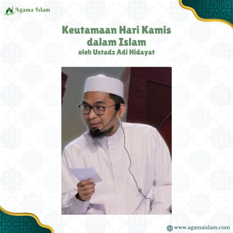 Hari Kamis merupakan salah satu hari istimewa dalam Islam. Banyak keutamaan yang terkandung pada hari ini, yang sayangnya masih sering diabaikan oleh sebagian umat. Menurut Ustadz Adi Hidayat, dalam salah satu kajian yang beliau sampaikan, hari Kamis memiliki posisi penting yang didukung oleh berbagai dalil dari Al-Qur’an dan Hadis. Umat Islam dianjurkan untuk memaksimalkan ibadah dan amal shaleh pada hari Kamis, sebagaimana tuntunan dari Rasulullah SAW.