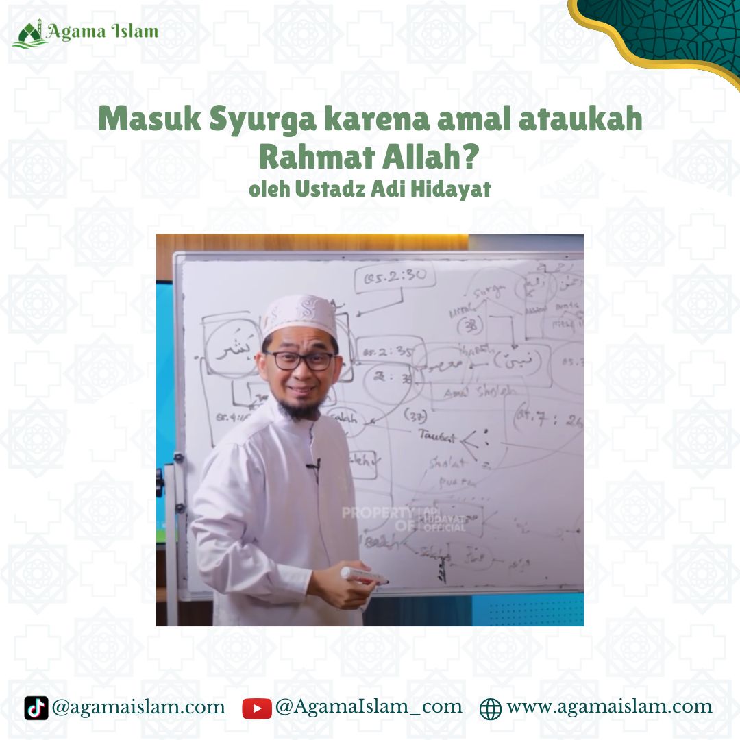 Ustadz Adi Hidayat menekankan bahwa amal shaleh ibarat “tiket masuk” ke surga, tetapi rahmat Allah adalah izin untuk melewati pintunya. Tanpa rahmat Allah, amal shaleh sebesar apa pun tidak akan cukup.