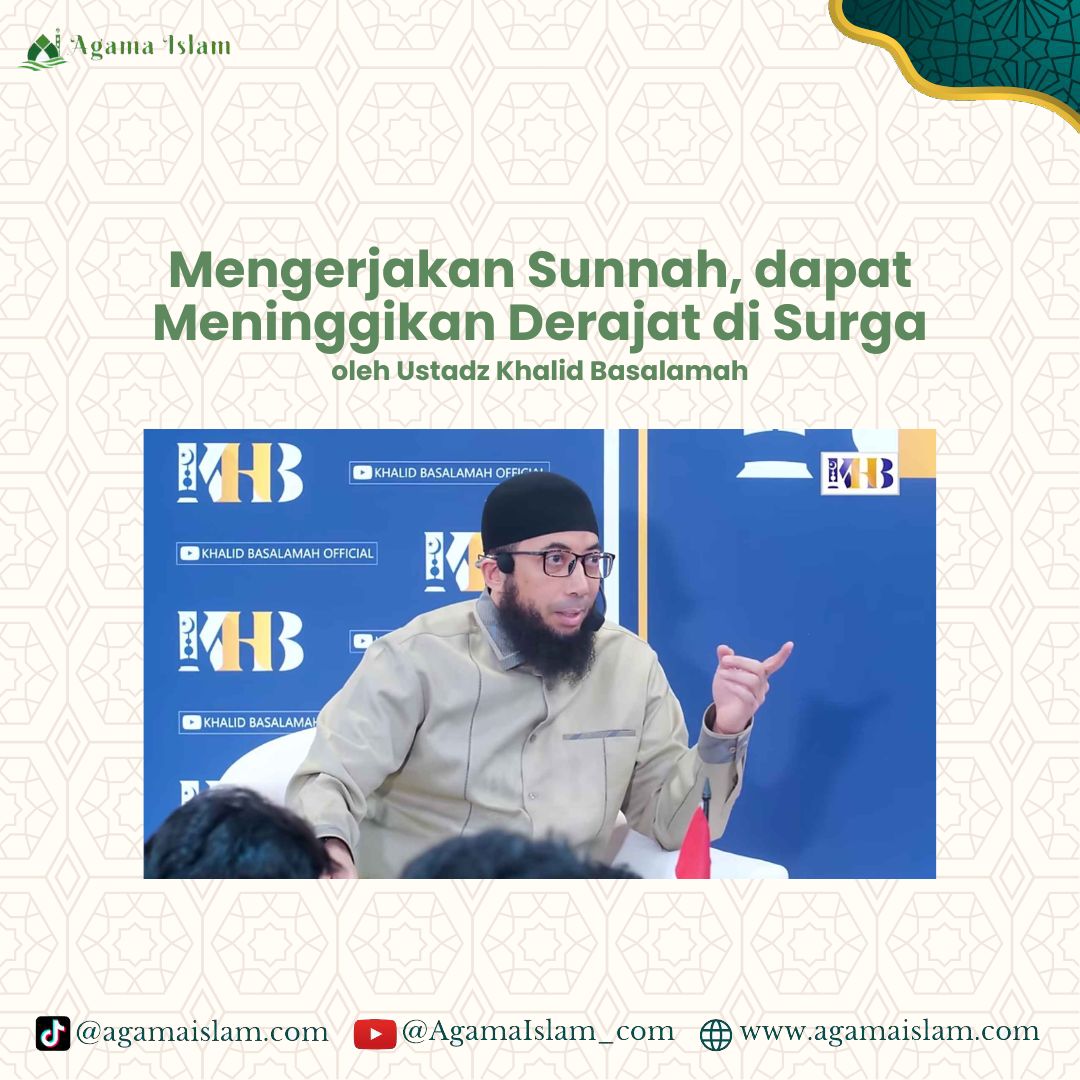 Ustadz Khalid Basalamah dalam salah satu ceramah singkatnya menegaskan bahwa mengerjakan amalan sunnah adalah pintu besar untuk meraih derajat tinggi di surga. Beliau mencontohkan bahwa orang-orang yang tekun mengamalkan sunnah, meskipun terlihat kecil, kelak akan mendapatkan kedudukan istimewa yang tidak dimiliki mereka yang hanya melaksanakan kewajiban.